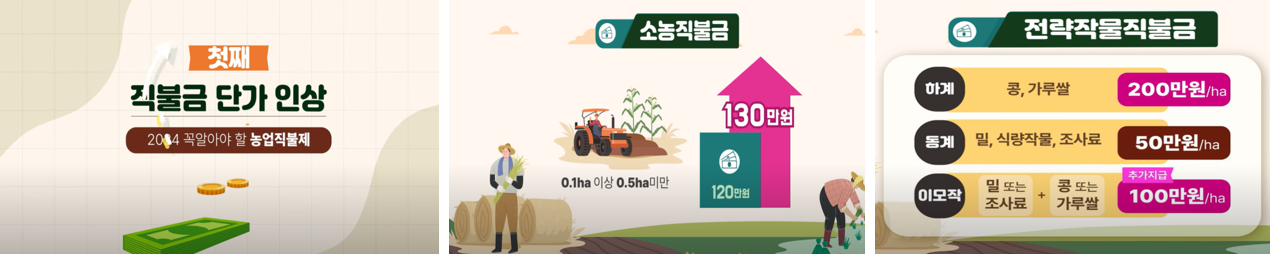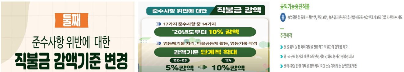 - 기본형 직불금: 소농직불금, 면적직불금 등