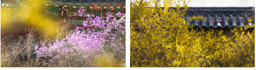 진달래는 봄철에 피는 분홍색 꽃으로, 덕수궁의 전통미와 어우러져 더욱 특별한 경관을 선사합니다. 꽃잎이 부드러워 봄바람에 흩날리는 모습은 낭만적인 분위기를 자아냅니다.