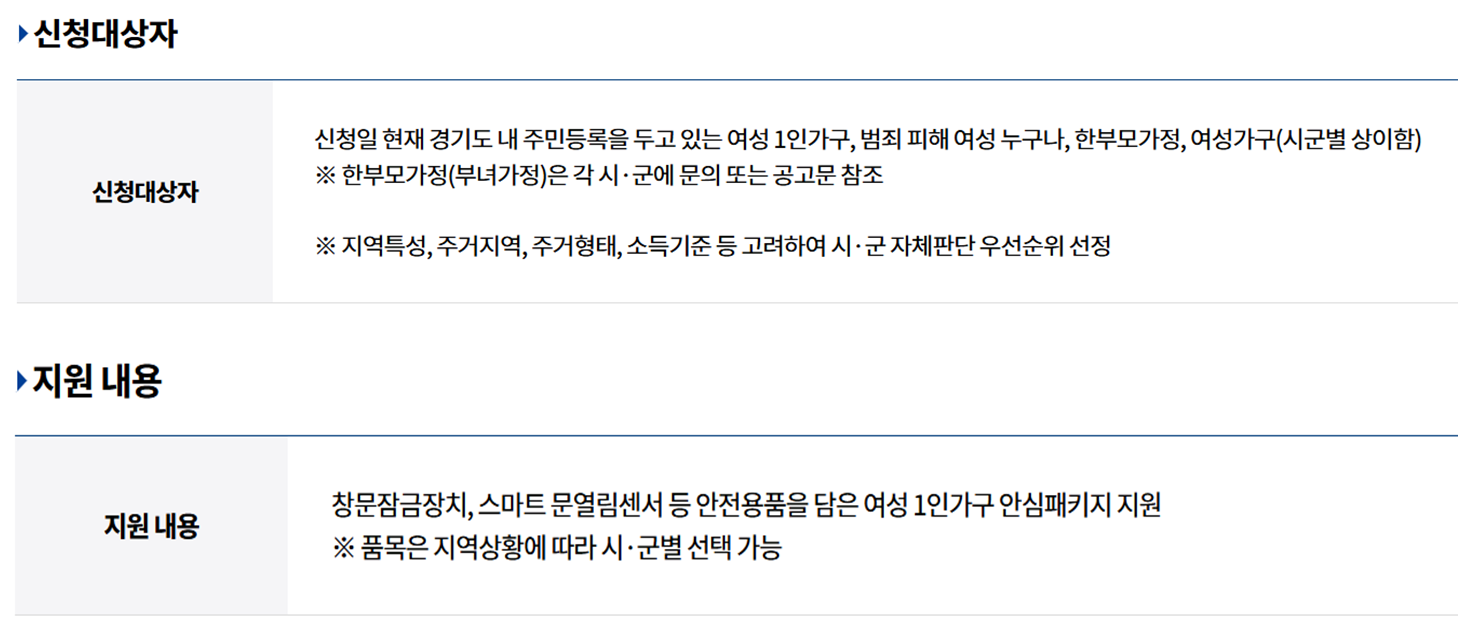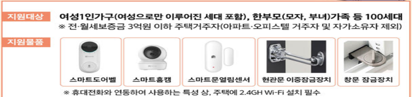 - 여성 1인 가구 대상, 자격 심사 후 설치