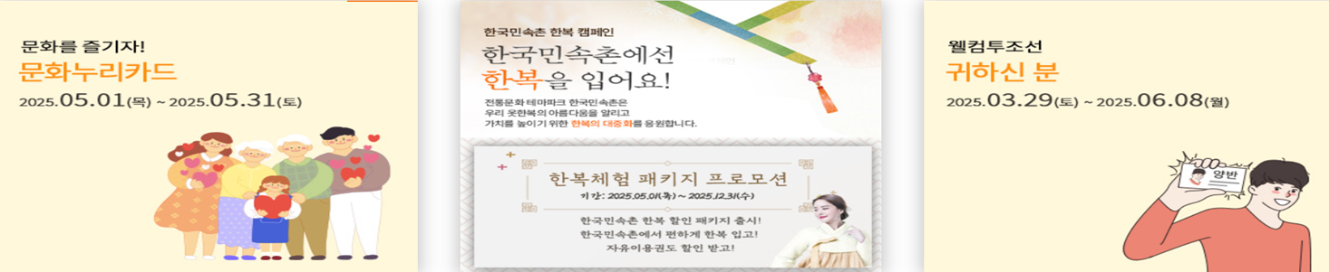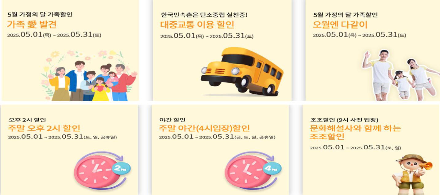 한국민속촌 공식 홈페이지 및 소셜커머스(네이버 예약, 쿠팡 등) 최대 30% 할인 가능