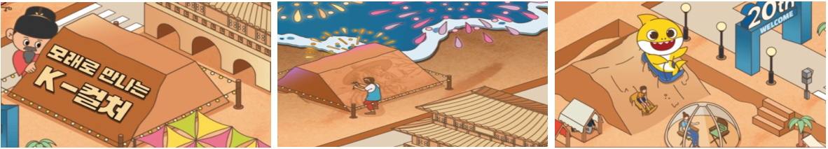 축제는 4일간 진행되지만, 모래 조각 전시회는 6월 8일까지 열립니다. K-컬처 테마의 작품은 어른뿐만 아니라 어린이들도 흥미롭게 볼 수 있는 내용으로 구성되어 있습니다. 핑크퐁 아기상어, 불닭볶음면, 거북선 등 실감 나게 만든 작품들은 관람객들의 큰 관심을 끌 것입니다. 또한, 기념사진을 찍는 재미도 쏠쏠합니다.