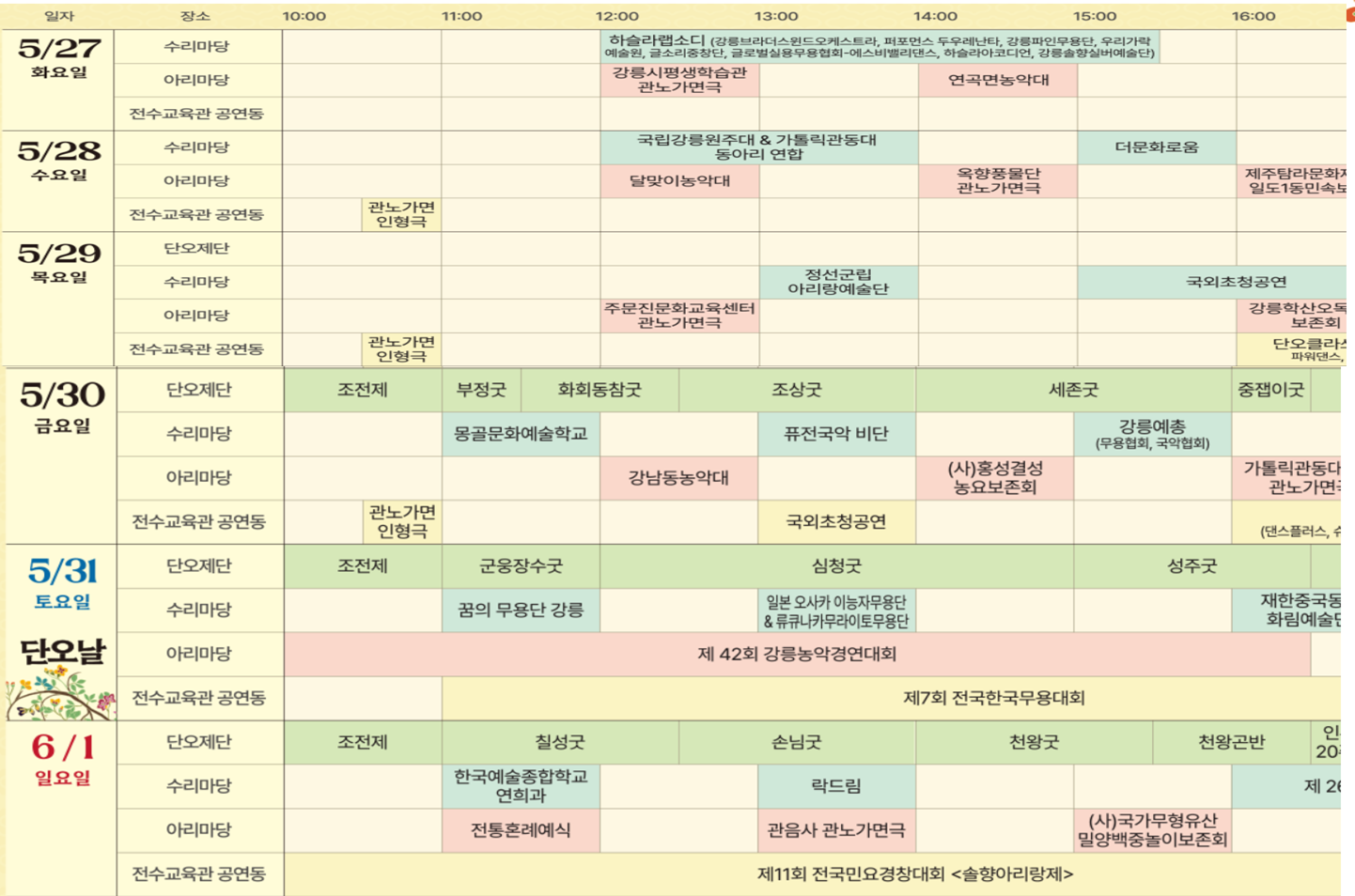 강릉단오제를 제대로 즐기기 위해서는 일정과 운영시간을 먼저 확인하는 것이 중요하겠죠?