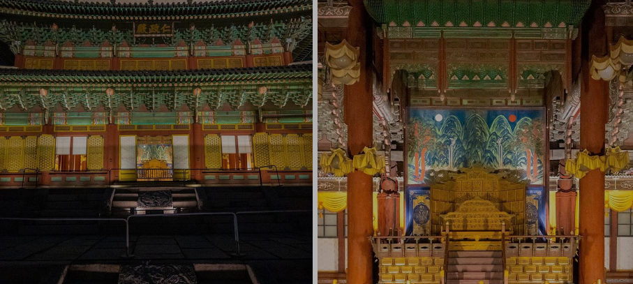 낮에는 보이지 않던 고궁의 모습, 밤이 되면 조명과 함께 화려하게 살아납니다. 고요한 궁궐 안, 은은한 불빛과 함께 걷는 산책은 마치 타임슬립한 듯한 분위기를 자아내며 관람객들에게 깊은 감동을 선사합니다.