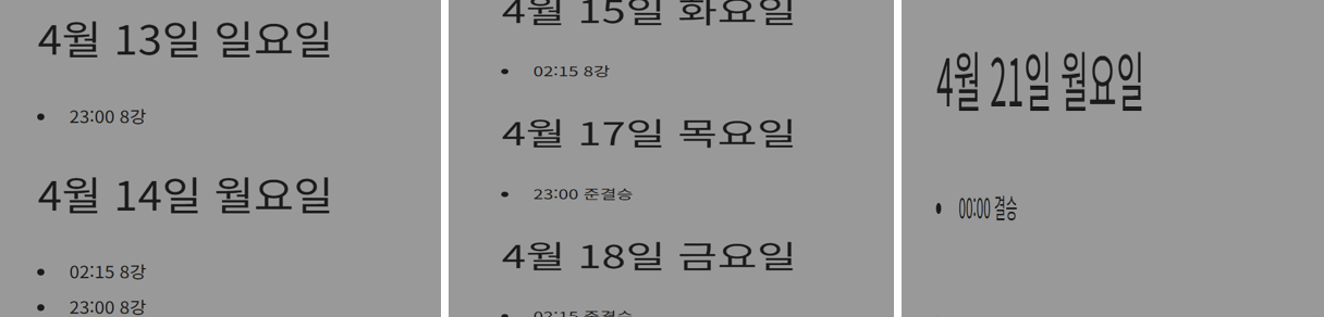 결승전: 4월 21일 (월) 00:00