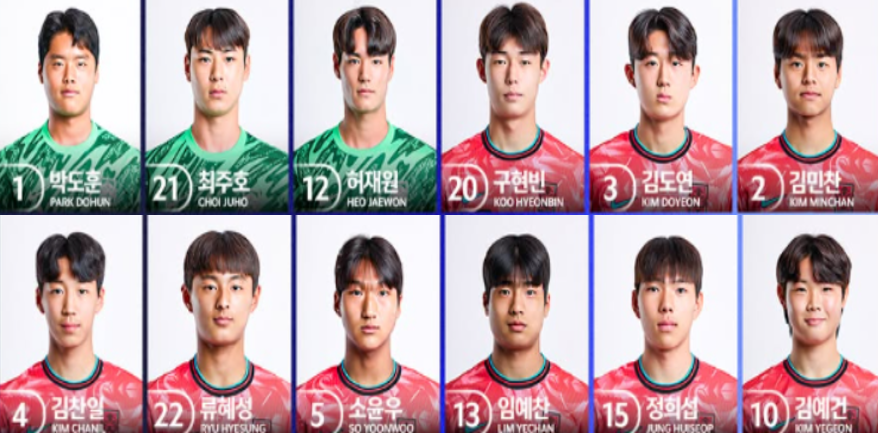 수비수: 구현빈 (인천유나이티드 U-18), 김도연 (대전하나시티즌 U-18) 외 9명